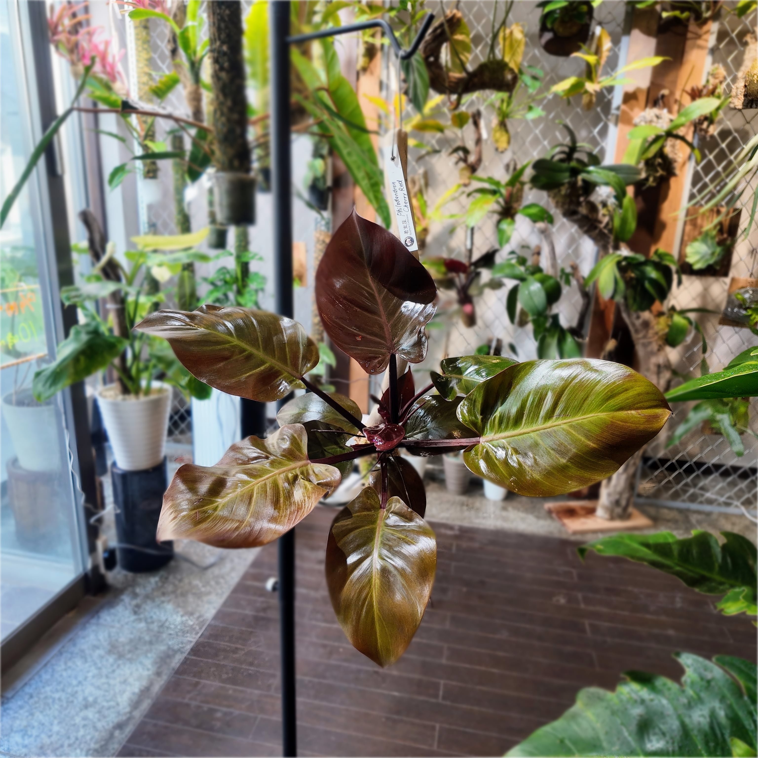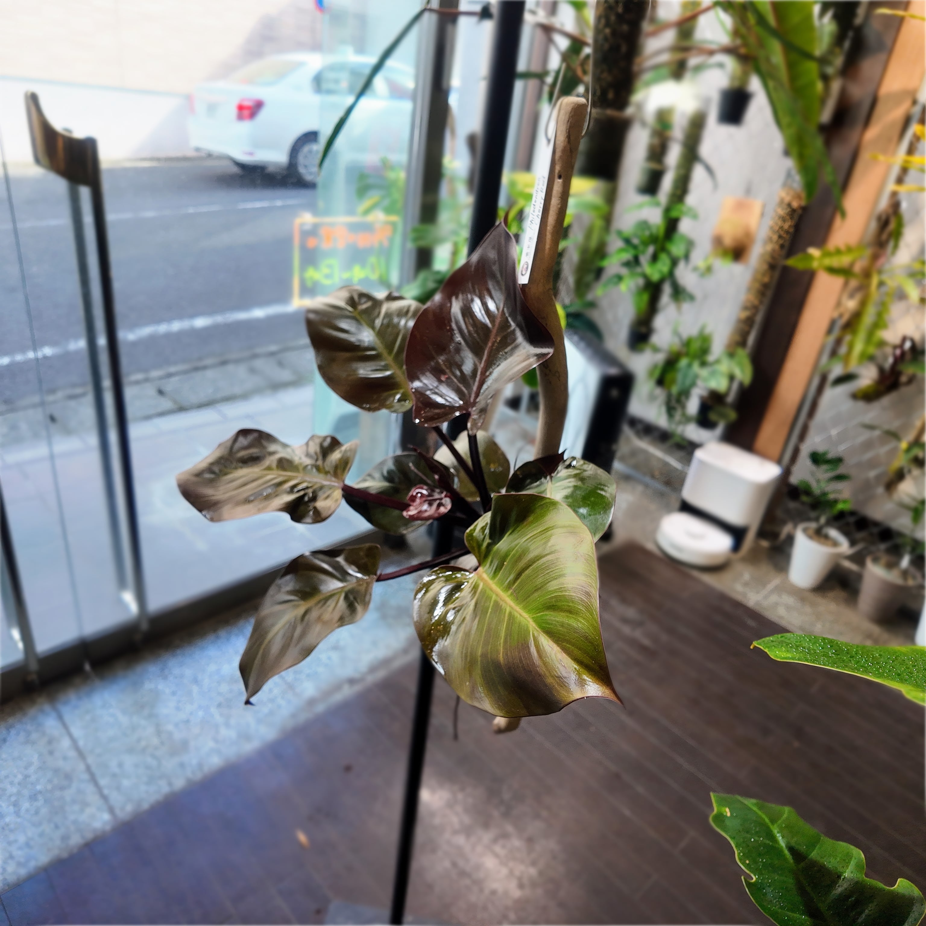 フィロデンドロン・チェリーレッドは、美しい赤みがかった葉が特徴で、お部屋に鮮やかな彩りを添えることができます。流木付きのデザインは、自然な印象を与え、インテリアにぴったりな存在感を放ちます。