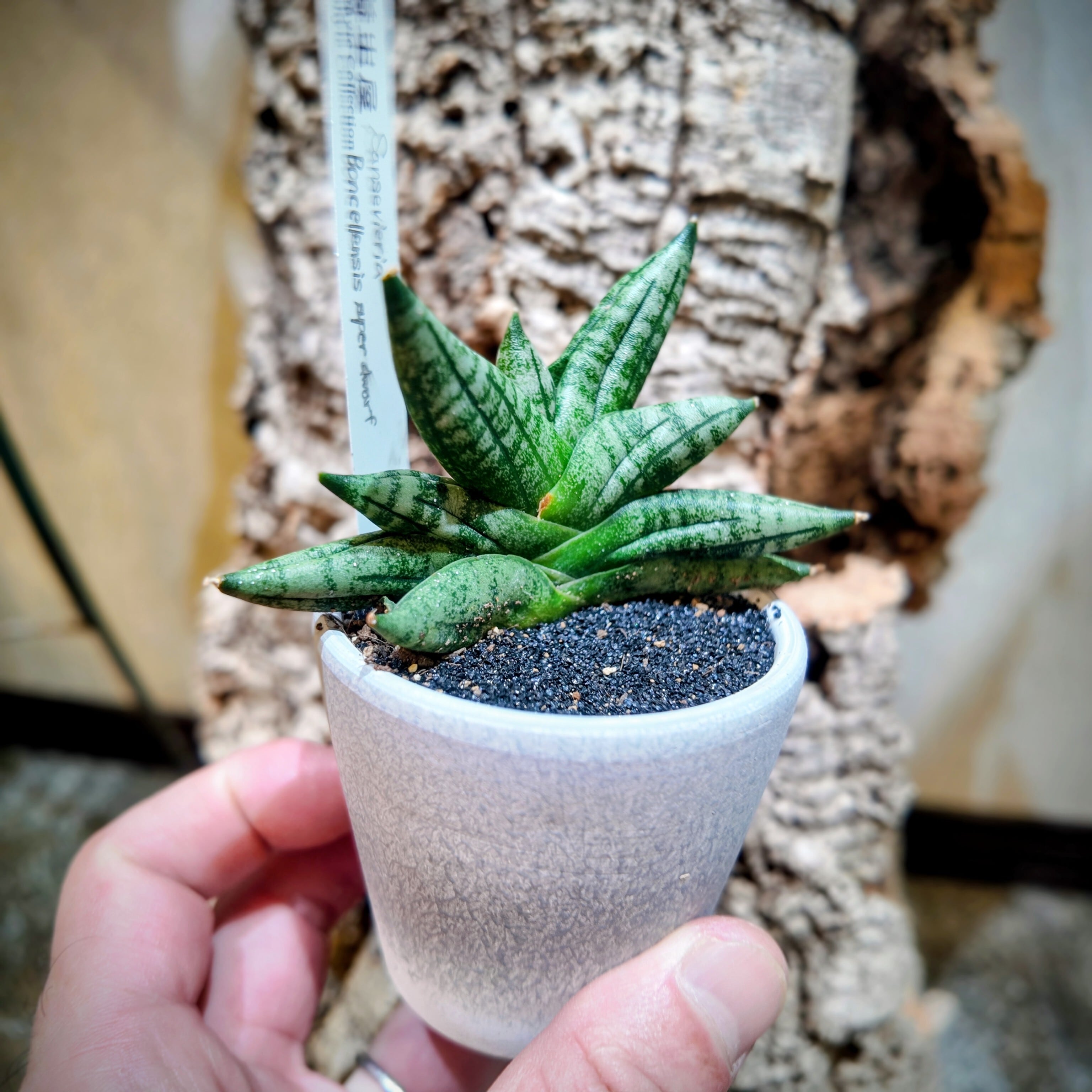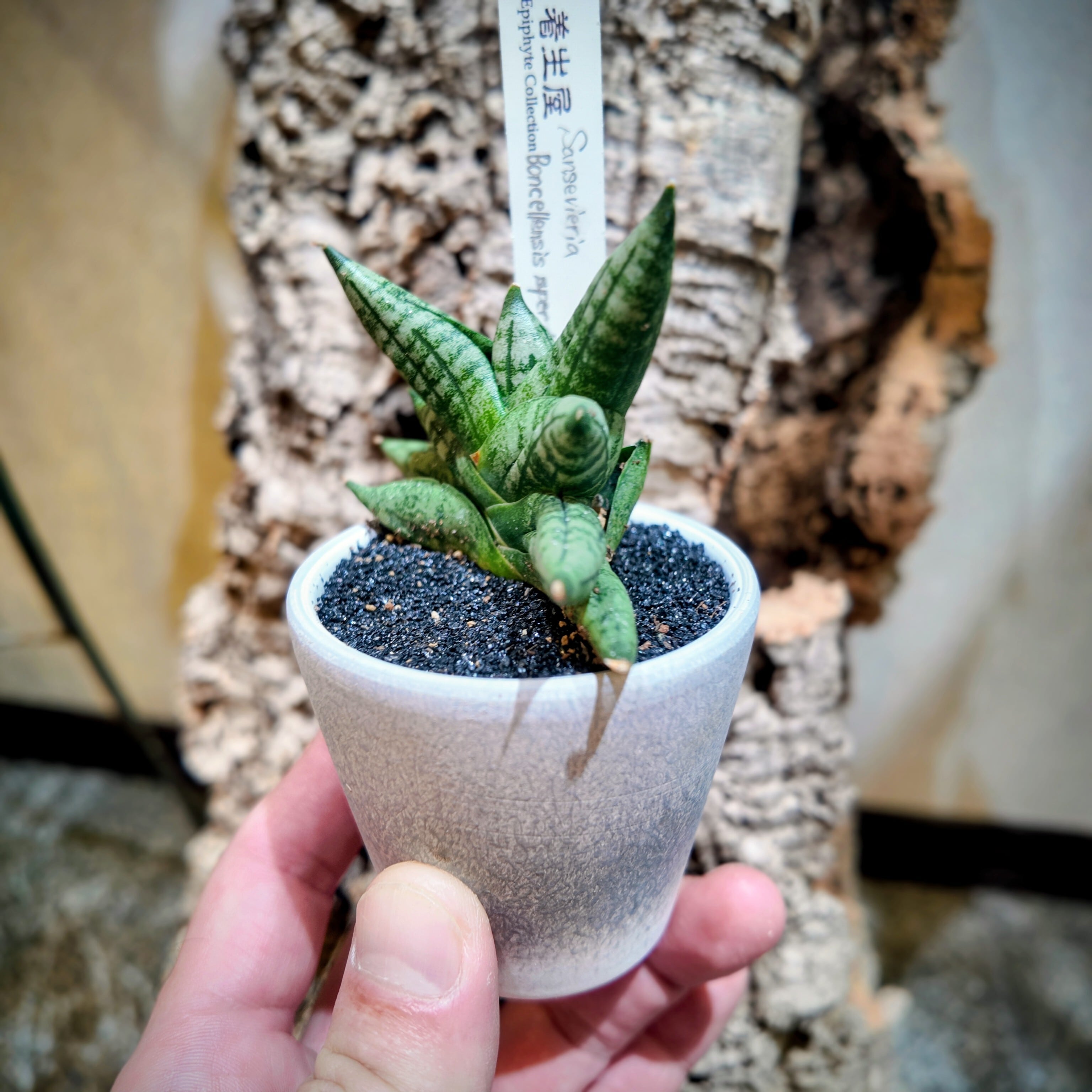 自然素材のため、葉の色合いや形状には個体差がございます。このユニークな風合いも、サンスベリア・ボンセレンシス・スーパードワーフの魅力の一部です。