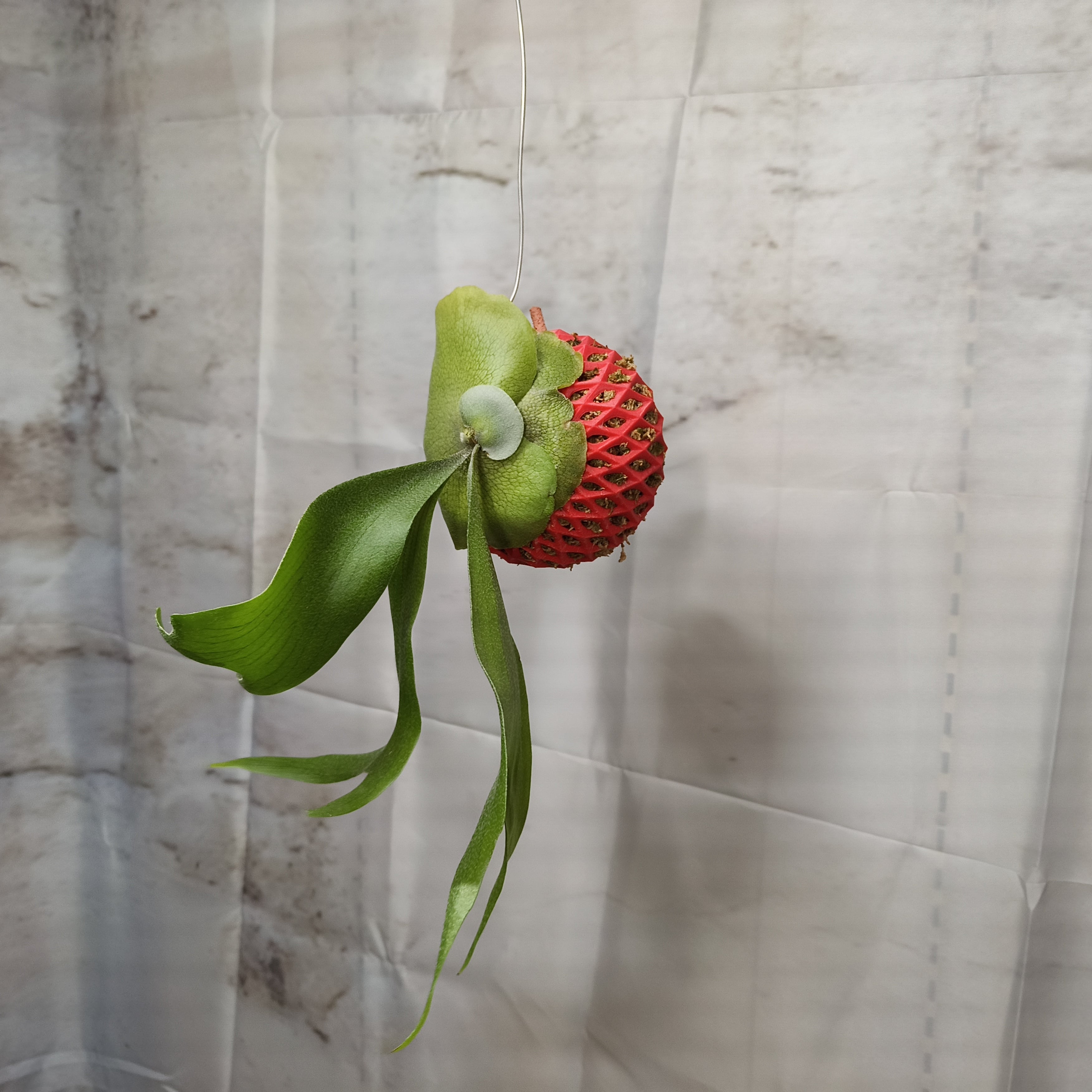 自然素材のため、苔玉の風合いや形状には個体差があります。この特性も、ビカクシダ・ネザーランド ボールの魅力のひとつです。